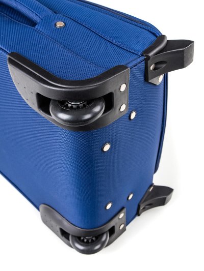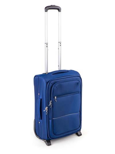 Cestovní textilní kufr 20'' v modré barvě, je vyrobený z textilie, což zaručuje nízkou hmotnost zavazadla. Je opatřený 2 kolečky pro snadné přemístění zavazadla. Kufr má 2 textilní madla (boční a horní) a 1 plastové s teleskopickou rukojetí s pojistkou proti zasunutí a možností nastavitelné výšky ve více polohách. Ve vnitřním prostoru naleznete jistící popruhy a vnitřní kapsu pro lepší fixaci a uspořádání vašich věcí. Dále má vnější kapsu pro umístění drobnějších věcí. Kufr se uzavírá na zip.