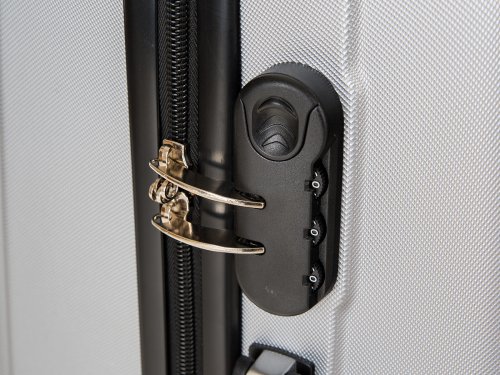 Cestovní skořepinový kufr na kolečkách ABS07, velikost M, v šedé barvě, je vyrobený z kvalitního plastu ABS, který je odolný proti nárazu. Je opatřený 4 kolečky otočnými o 360 stupňů, díky kterým je manipulace s kufrem velice snadná. Kufr má 3 plastová madla: boční a dvě horní, z nichž je jedno s teleskopickou rukojetí s pojistkou proti zasunutí a možností nastavitelné výšky ve více polohách. Kufr se uzavírá na zip a oba jezdce můžete spojit do kódového zámku. Vnitřní část kufru má látkovou dělíií přepážku s kapsou a křížové upínání pro lepší fixaci a uspořádání vašich věcí.