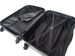 Vnitřní část kufru má látkovou dělíií přepážku s kapsou a křížové upínání pro lepší fixaci a uspořádání vašich věcí.