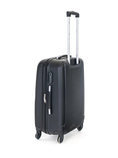 Cestovní skořepinový kufr na kolečkách ABS16, velikost M, v černé barvě, je vyrobený z kvalitního plastu ABS, který je odolný proti nárazu.