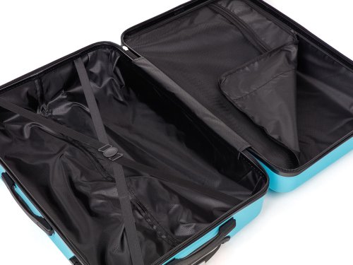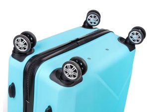 Cestovní skořepinový kufr na kolečkách ABS25, velikosti 28'', ve světle modré barvě, je vyrobený z kvalitního plastu ABS, který je odolný proti nárazu. Je opatřený 4 kolečky otočnými o 360 stupňů, díky tomu je manipulace s kufrem velice snadná. Kufr má 3 plastová madla: boční a dvě horní, z nichž je jedno s teleskopickou rukojetí s pojistkou proti zasunutí a možností nastavitelné výšky ve více polohách. Kufr se uzavírá na zip a oba jezdce můžete spojit do kódového zámku. Vnitřní část kufru má látkovou dělící přepážku s kapsou a křížové upínání pro lepší fixaci a uspořádání vašich věcí.