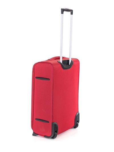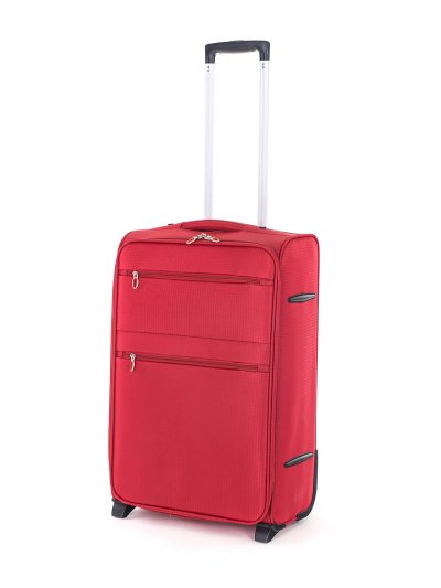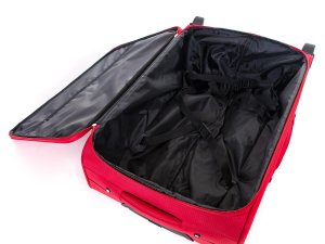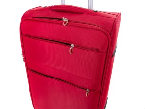 Cestovní textilní kufr TEX15, velikosti M, v červené barvě,, je vyrobený z textilie, což ocení především cestovatelé, pro které je důležitá nízká hmotnost zavazadla.