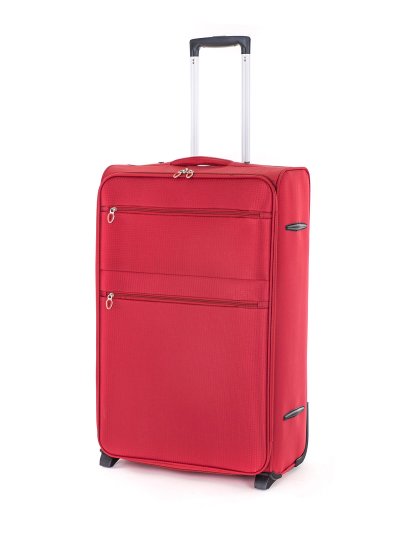 Cestovní textilní kufr TEX15, velikosti L, v červené barvě,, je vyrobený z textilie, což ocení především cestovatelé, pro které je důležitá nízká hmotnost zavazadla.