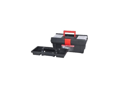 Kufr na nářadí STUFF PROFI je vyrobený z kvalitního plastu, ve vrchní části jsou dva organizéry pro drobné součástky uzavřené víkem, připraven i otvor pro visací zámek."