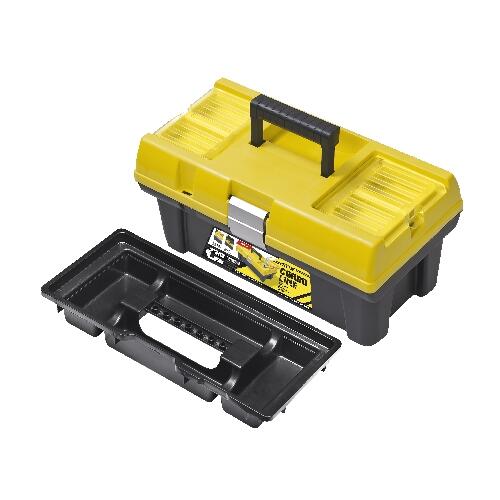 Kufr na nářadí STUFF SEMI PROFI CARBO je vyrobený z kvalitního plastu, ve vrchní části jsou dva organizéry pro drobné součástky uzavřené víkem."