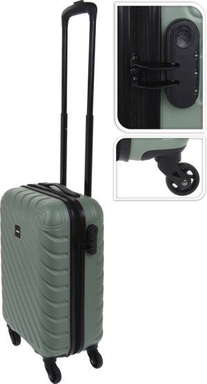 odolné kabinové zavazadlo se čtyřmi tichými kolečky a bezpečnostním kódovým zámkem- materiál: tvrzený ABS plast- kvalitní, nepromokavý, pevný materiál s dobrou odolností proti poškrábání- teleskopická rukojeť- v horní části také sklopné madlo pro ruční přenášení- hlavní velká kapsa na dvojcestný zip se zámkem- bezpečnostní zámek na číselný kód je nejlepším způsobem jak zajistit bezpečí vašeho zavazadla- vnitřní prostor kufru je vybaven elastickými pásy k připevnění obsahu- samozřejmostí jsou 4 kolečka otočná o 360°- skořepinový kufr z tvrzeného ABS plastu výborně odolává případným pádům na zem nebo větší zátěži- odpovídá definici příručního zavazadla a lze si jej vzít na palubu letadla- celkové rozměry i s kolečky: 33 x 20 x 51 cm- objem kufru: 28 litrů- nízká váha pouze 2.15 kg- barva: matná zelená- značka: PROWorld.
