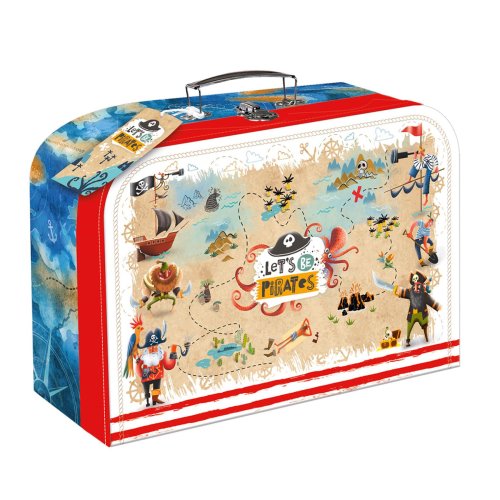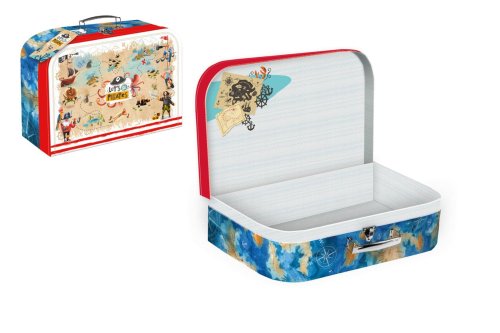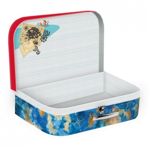 Kvalitní dětský šitý kufřík s kovovou přezkou a držadlem. Kufřík je z tvrzeného papíru a laminací na povrchu s motivem pirátů. Rozměr kufru: 35 x 23 x 10 cm Vhodné od 3 let