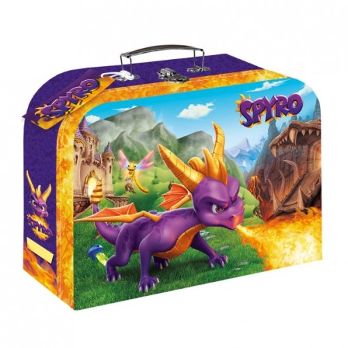 Kvalitní dětský šitý kufřík s kovovou přezkou a držadlem. Kufřík je z tvrzeného papíru a laminací na povrchu s motivem draka Spiro. Rozměr kufru: 35 x 23 x 10 cm Vhodné od 3 let