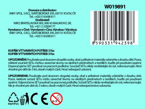Kufřík výtvarných potřeb Autobus. Obsahuje: 8 pastelek, 8 voskovek, 1 akvarelové barvy, 8 fixek, 1 guma, 1 ořezávátko, 1 tužka, 1 štětec, 1 houbička, 1 deníček. Může se stát, že nějaký fix nepíše.