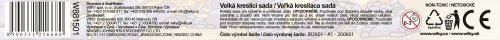Kufřík obsahuje: 12 fixů, pastelek, voskovek a olejových pastelů, vodovky (12 odstínů), obyčejnou tužku, malířskou paletu, štětec, gumu, ořezávátko, pravítko, lepidlo na papír