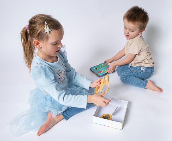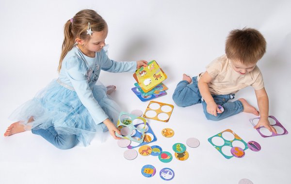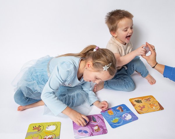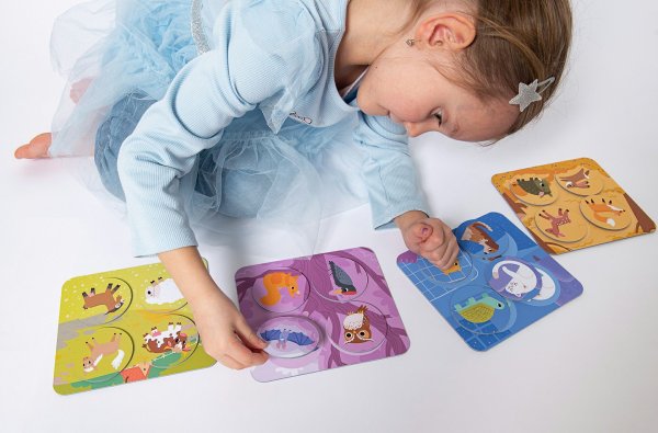 Položte vybranou desku a odpovídající žetony před dítě. Dítě má za úkol umísťovat žetony na správná místa. Přidejte na plochu víc žetonů. Požádejte své dítě, aby přikládalo žetony na správná místa na hracích deskách. Cílem je použít všechny hrací desky a docílit, aby dítě správně položilo všechny žetony.