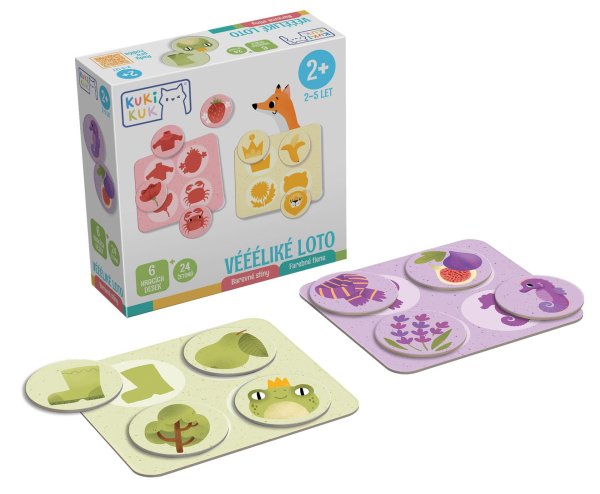 Zábavná a interaktivní hra Véééliké loto Barevné stíny pomáhá dětem od nejútlejšího věku procvičovat jejich schopnost poznávat tvary a barvy. Sada se skládá ze 24 velkých kulatých žetonů a šesti hracích desek z pevného 2 mm kvalitního kartonu, ideálního pro malé dětské ručičky. Obsahuje různé tipy, jak využít kartičky a žetony k dalším herním variantám.