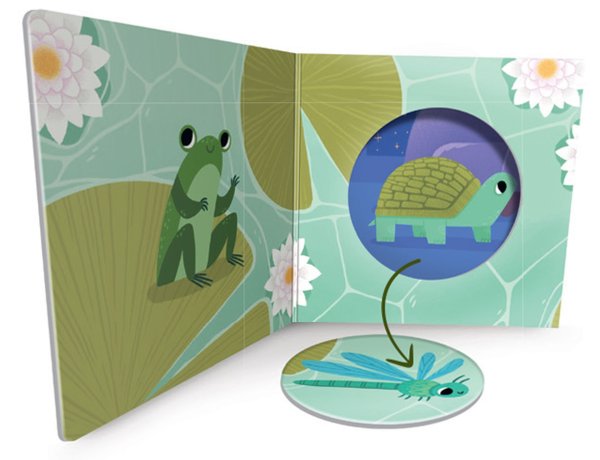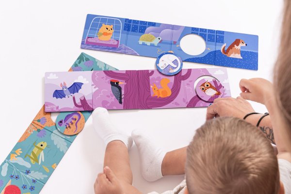 Děti nahlížejí výřezem, střídají zvířátka, přiřazují je ke správnému prostředí a vyprávějí vlastní příběhy. Díky různým kombinacím stránek vznikají nečekané průhledy a překvapení.