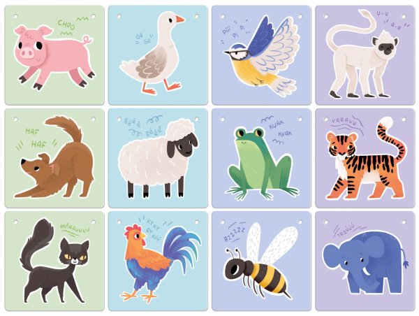 První zvuky - první slova. Hra, která přirozeně rozvíjí řeč napodobováním zvuků. Jednoduché a srozumitelné obrázky jsou doplněny grafickou nápovědou - děti napodobují zvuky, poznávají motivy a rozvíjejí komunikační schopnosti i sluchové vnímání.