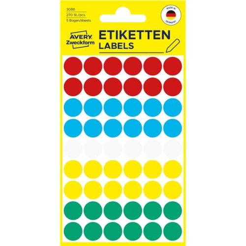 Kulaté etikety Avery, 12 mm, mix barev - mix variant či barev