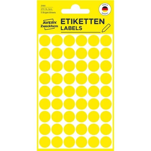 Kulaté značkovací etikety žluté barvy Etikety jsou dostupné ve třech velikostech a různých barvách Vhodné pro ruční popis Barva: žluté Rozměry etiket, štítku: 12 mm Počet etiket, štítků na archu: 54 …