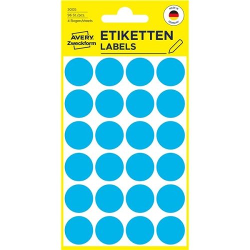 Kulaté značkovací etikety modré barvy Etikety jsou dostupné ve třech velikostech a různých barvách Vhodné pro ruční popis Barva: modré Rozměry etiket, štítku: průměr 18 mm Počet etiket, štítků na archu: …