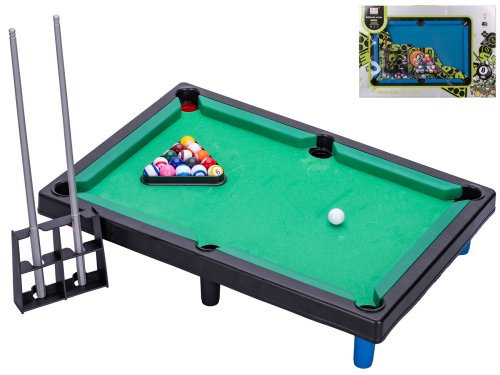 Kulečník 41,5x28,5 cm s tágem 2 ks a koulemi 16 ks - mix barev (zelená, modrá)