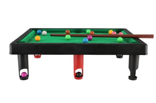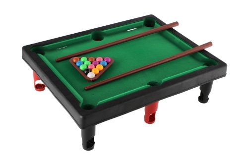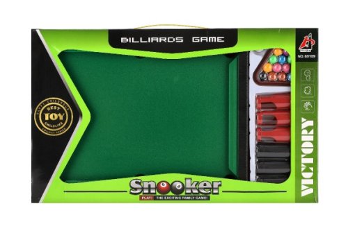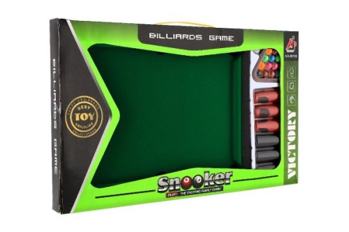 Dětský stolní kulečník je věrnou zmenšeninou klasického kulečníku. Stačí hru položit na stůl nebo jakoukoliv jinou rovnou plochu a hra může začít! Nechybí ani triangl pro srovnání koulí. Tento malý kulečníkový stůl je určen pro zábavu a trénuje motoriku a koordinaci rukou a očí. Velikost složeného kulečníku 33 x 26 x 10 cm. Rozměry balení 44 x 27 x 3 cm. Vhodné pro děti od 3 let.