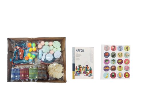 Výrobek obsahuje nevyměnitelné baterie (LR1130, LR41 a CR1220) s jednorázovým použitím, které napájí světelné efekty – tyto efekty fungují pouze po dobu životnosti baterií. Můžeš kombinovat tvary z této sady s tvary z jiných sad z této řady pro ještě více možností. Některé tvary a produkty se prodávají samostatně.