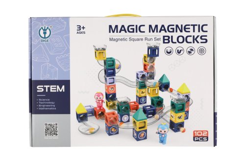 Zábavná hra s magnety, pomocí kterých vytváříte kreativní tvary a dráhu pro své kuličky. Po dostavení své trasy Vás čeká chvíli napětí! Projedou plastové kuličky od začátku do konce? Na to dohlédnou i postavičky Nink a Wink! Stavebnice zlepšuje představivost a kreativní myšlení dítěte. Balení obsahuje 102 dílku. Rozměr balení: 49 x 35 x 9 cm Vhodné pro děti od 3 let