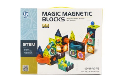 Magnetická stavebnice bloky - dráha. Zábavná hra s magnety, pomocí kterých vytváříte kreativní tvary a dráhu pro své kuličky. Po dostavení své trasy Vás čeká chvíli napětí! Projedou plastové kuličky od začátku do konce? Stavebnice zlepšuje představivost a kreativní myšlení dítěte. Skvělá vzdělávací hračka pro vzdělávání v raném dětství. 66 dílku v balení. Rozměry krabice: 31 x 25 x 8 cm Vhodné pro děti od 3 let