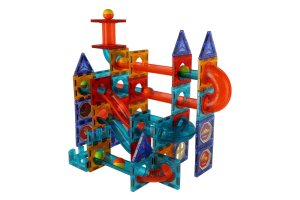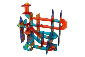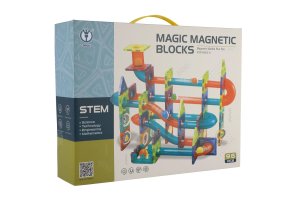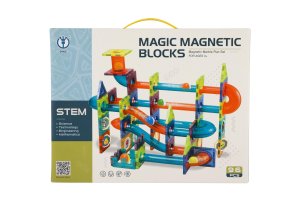 Kuličková dráha umožňuje sledovat cestu kuličky a její rychlost z horní části až dolů. Která kulička bude rychlejší a které sestavení dráhy bude zajímavější? Sestavte magnetickou kuličkovou dráhu dle návodu nebo podle vlastní fantazie a zábava může začít. Polepte samolepkami díly k tomu určené, arch se samolepkami je součástí balení. Balení obsahuje celkem 96 ks. Rozměry balení 36 x 28 x 9cm Vhodné pro děti od 3 let