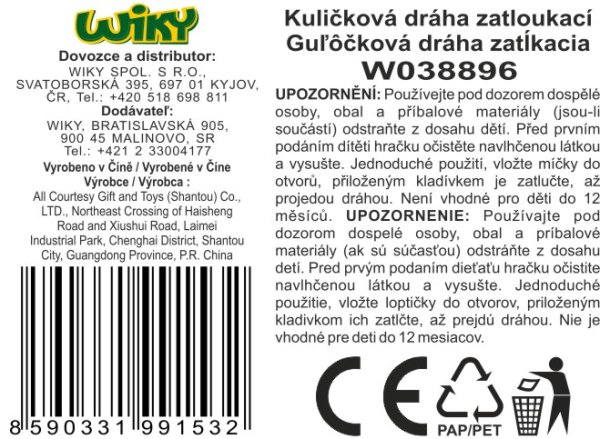 Kuličková dráha zatloukací. Velikost 32cm. Obsahuje dráhu, 3 kuličky a kladívko.