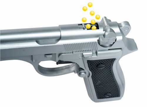 Sada obsahuje zbraň a 100 nábojů/kuliček. Zásobník se plní kuličkami v horní části zbraně a po zmáčknutí spouště je kulička vystřelena pružinou. Pistole je vyrobena z plastu, 3 druhy - ve stříbrné, černé nebo hnědé barvě. Délka pistole 21 cm.