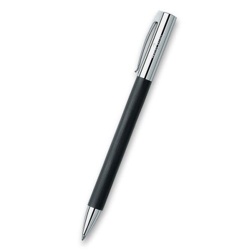 Kuličkové pero Faber-Castell Ambition Precious Resin s tělem z broušené černé pryskyřice v kombinaci s doplňky z pochromovaného leštěného kovu.