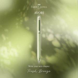 Kuličkové pero Faber-Castell Avori Fresh Breeze v inovativním designu inspirovaném skandinávským interiérem s fazetovým tělem.