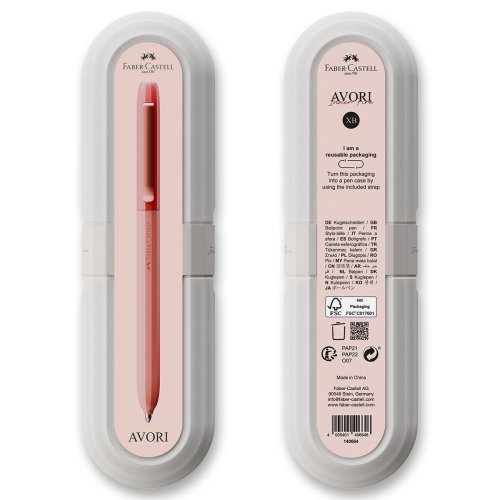 Kuličkové pero Faber-Castell Avori Inner Fire v inovativním designu inspirovaném skandinávským interiérem s fazetovým tělem.