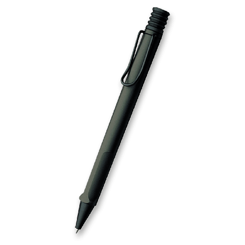 Kuličkové pero Lamy Safari Matt Charcoal má tělo z tvrzeného ABS plastu, úchopová zóna je ergonomicky tvarovaná.