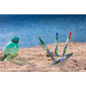 Kuličkové pero Pilot B2P Ecoball se stiskacím mechanismem, vyrobené z 86 % z recyklovaných plastových lahví s podílem min. 2,5 % recyklovaného oceánského plastu.