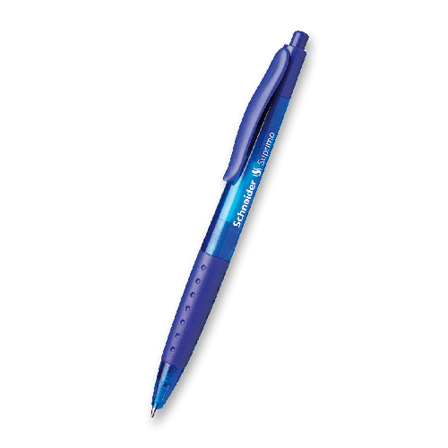 Kuličkové pero s plastovým transparentním tělem a pogumovaným úchopem. barva těla v barvě náplně ve 4 barevných provedeních voděodolný inkoust s výjimkou červeného kompatibilní s dalšími náplněmi Schneider, …