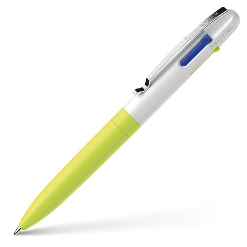 4barevné kuličkové pero s modrou, černou, neonově zelenou a neonově žlutou náplní. Inkoust s Viscoglide® technologií pro hladké psaní. Tělo tužky je vyrobené z 92 % z recyklovatelného plastu ve dvou barevných provedeních. Stiskací mechanismus je umístěný po straně. Odolný kovový klip M. Šíře stopy 0,4 mm.