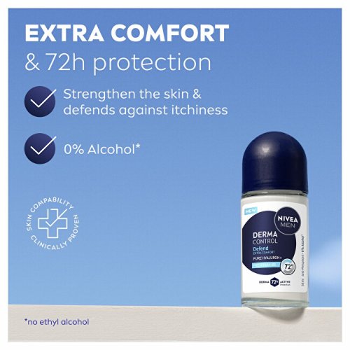 Objevte spolehlivý antiperspirant, který vám zajistí účinnou ochranu před potem a zápachem až na 72 hodin. Díky inovativnímu složení s kyselinou hyaluronovou a provitamínem B5 zároveň pečuje o pokožku podpaží. Vyzkoušejte kuličkový antiperspirant pro muže Derma Control Defend.