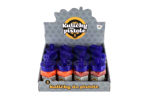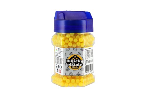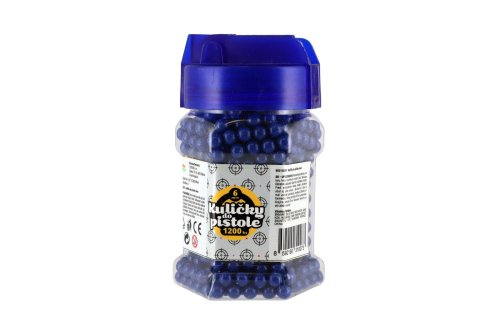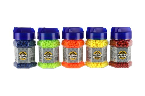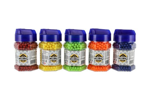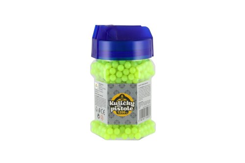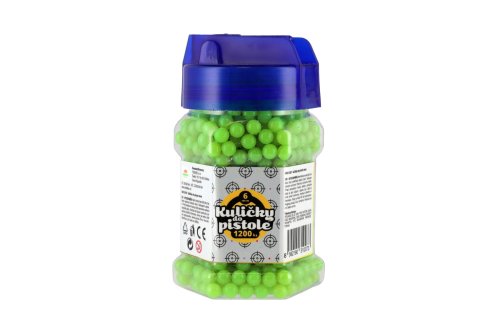 Náhradní plastové kuličky do pistolí pro dětské střelce a zábavné soutěže ve střelbě na cíl. Balení obsahuje 1200 kusů kuliček o průměru 6 mm, které jsou lehké a vhodné pro běžné hračkářské pistole. Díky praktické lahvičce s uzávěrem se kuličky snadno skladují a dávkují. K dostání v několika barevných variantách. Rozměry výrobku 6 x 11 x 6 cm. Vhodné pro děti od 3 let.