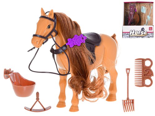 Kůň 17 cm s doplňky - mix barev (světle hnědá, tmavě hnědá)