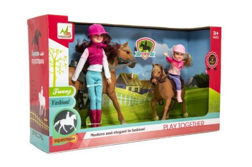 Nádherná sada pro malé milovnice koní. Žokejkám nechybí jezdecké oblečení ani helma. Hříva ani ocas nejsou česací. Vyrobeno z kvalitních a odolných materiálů. Doplňte si farmu o nové koníky i s jezdkyněmi.