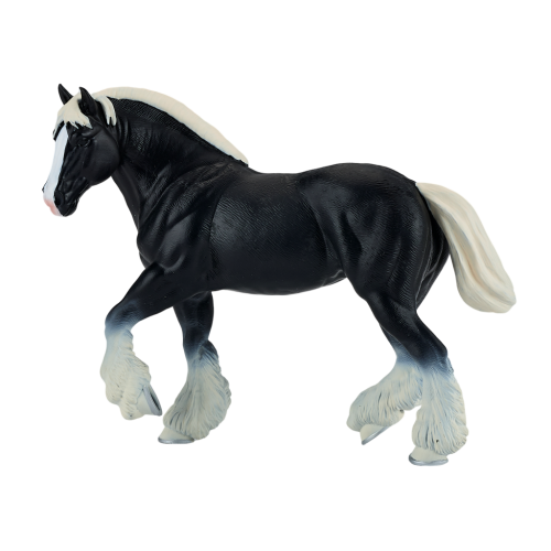 Impozantní figurka černého koně plemene Clydesdale, známého pro svou sílu, eleganci a vysokou stavbu těla. Tento krásně detailně zpracovaný kůň s tmavou srstí a silnými nohami zachycuje charakteristické rysy tohoto slavného pracovního plemene. Vyrobena z kvalitního PVC bez ftalátů (non-phthalate), bezpečná pro děti od 3 let. Skvělá pro sběratelské účely, výuku o koních nebo jako hračka. Výrobek má ručně malované detaily.