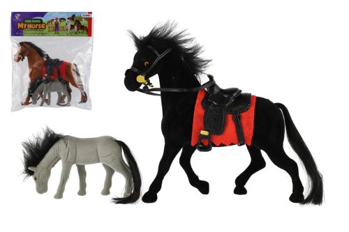Kůň se sedlem a ohlávkou pro všechny obdivovatele a milovníky koní. Kůň je plastový s povrchovou úpravou fliška. Figurku využijete například při hraní na vaší farmě. Rozměry balení 21 x 25 x 5 cm. Vhodné pro děti od 3 let.
