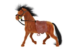 Kůň se sedlem a ohlávkou pro všechny obdivovatele a milovníky koní. Kůň je 22 cm velký, plastový, s povrchovou úpravou fliška. Figurky využijete například při hraní na vaší farmě. Rozměry balení 21 x 25 x 6 cm. Vhodné pro děti od 3 let.