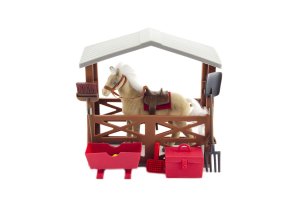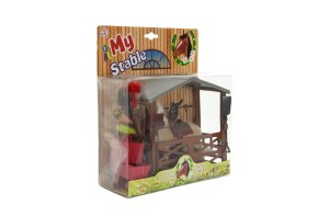 Kůň se sedlem a ohlávkou pro všechny obdivovatele a milovníky koní. Kůň je plastový s povrchovou úpravou fliška. Balení obsahuje také stáj a dopňky jako vědro na vodu, koště, vidle, lopatu a kufřík s potřebami pro koně. Rozměry balení 23 x 27 x 9cm. Vhodné pro děti od 3 let.