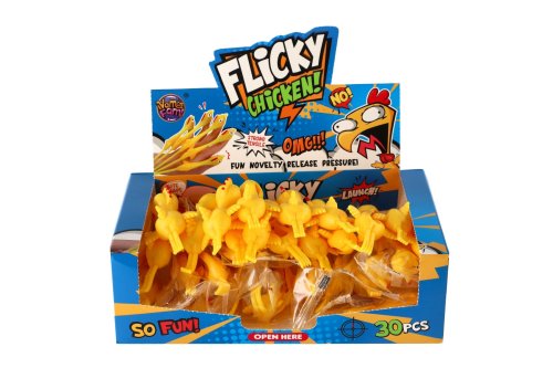 Natahovací kuře. To je bezva antistresová hračka, kterou užiješ mačkáním v dlani. Další možnost, jak se zbavit stresu s touto hračkou je, že navlékneš na prst, natáhneš druhou rukou a střelíš! Pokud se trefíš třeba na zeď, kuře tam zůstane než si pro něj přijdeš ho sundat. Rozhodně tě špatná nálada a stres s tím kuřátkem opustí! Velikost hračky: 10 cm Vhodné pro děti od 3 let