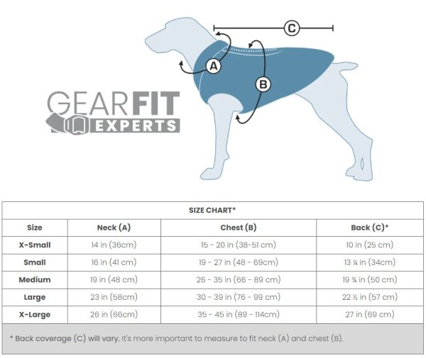 | Velikost | Obvod krku v cm | Obvod hrudníku v cm | Délka zad* v cm |
