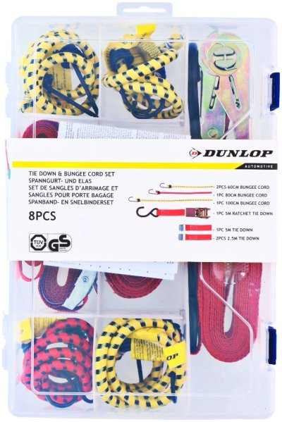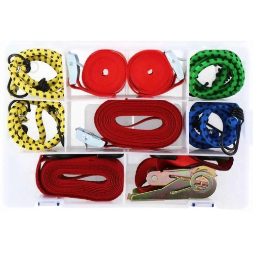 Bezpečná přeprava – při přepravě předmětů je důležité, aby byly bezpečně upevněny. S touto sadou 8 pásů a expandérů si můžete bezpečně vzít své věci s sebou.Variace – sada se liší délkou a upevněním. Tak máte vždy po ruce vhodnou kravatu.8 ks – sada se skládá ze 4 pásů (2 x 2,5 metrů s kovovou sponou, 1 x 5 metrů s kovovou sponou, 1 x 5 metrů s ráčnou a háčkem z kovu) a 4 gumičky s háčky (2 x 60 cm, 1 x 80 cm a 1 x 100 cm).Přehled – sada se dodává v průhledném kufru, takže můžete vše řádně uložit a vidět obsah na první pohled.Úspora úložného prostoru – kromě přepravy předmětů jsou popruhy praktické, pokud chcete věci efektivně uložit. Kompaktněji je spojují a mohou také použít prázdný prostor např. pod trámy vaší deky.