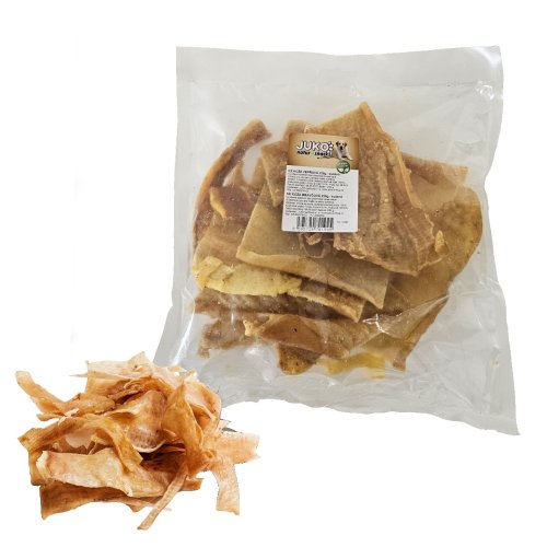 Vepřová kůže zbavená viditelného podkožního tuku. Přirozený zdroj látek potřebných pro vývoj a udržení zdravých kloubů. Napomáhá čistit chrup a posiluje žvýkací svaly. Vhodné pro malé i větší pejsky.