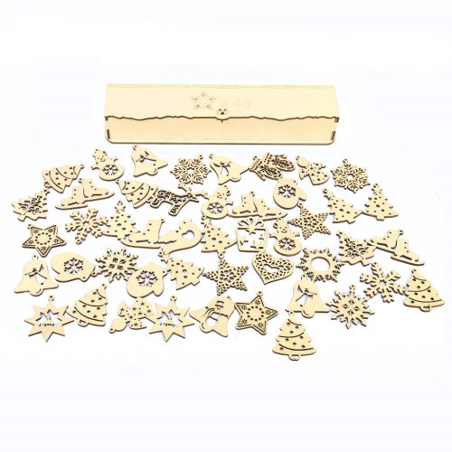 I váš vánoční stromeček může být ozdobený těmito malými dřevěnými ozdobami. Kombinace vloček, zvonečků, stromečků, andílků, sobů, dárečků, sněhuláků, hvězdiček, holubiček, zimních bruslí anebo rukaviček dodají pravou vánoční atmosféru každému domovu. Mix rozmanitých druhů vánočních ozdob je dodávan v originalní dřevěné krabičce. Hlavní vlastnosti: 48 ksmix rozmanitých druhů vánočních ozdobuloženo v originální dárkové krabičcevyrobeno z topolového dřeva