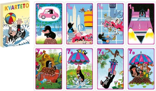 32 karet + karta s návodem ke hře , materiál krabičky i karet pevný karton s lesklou povrchovou úpravou-voděodpudivá, krabička papírová z důvodu tradice i bezpečnosti dětí, na výrobek byla udělena ocenění "česká kvalita" a "bezpečná a kvalitní hračka"